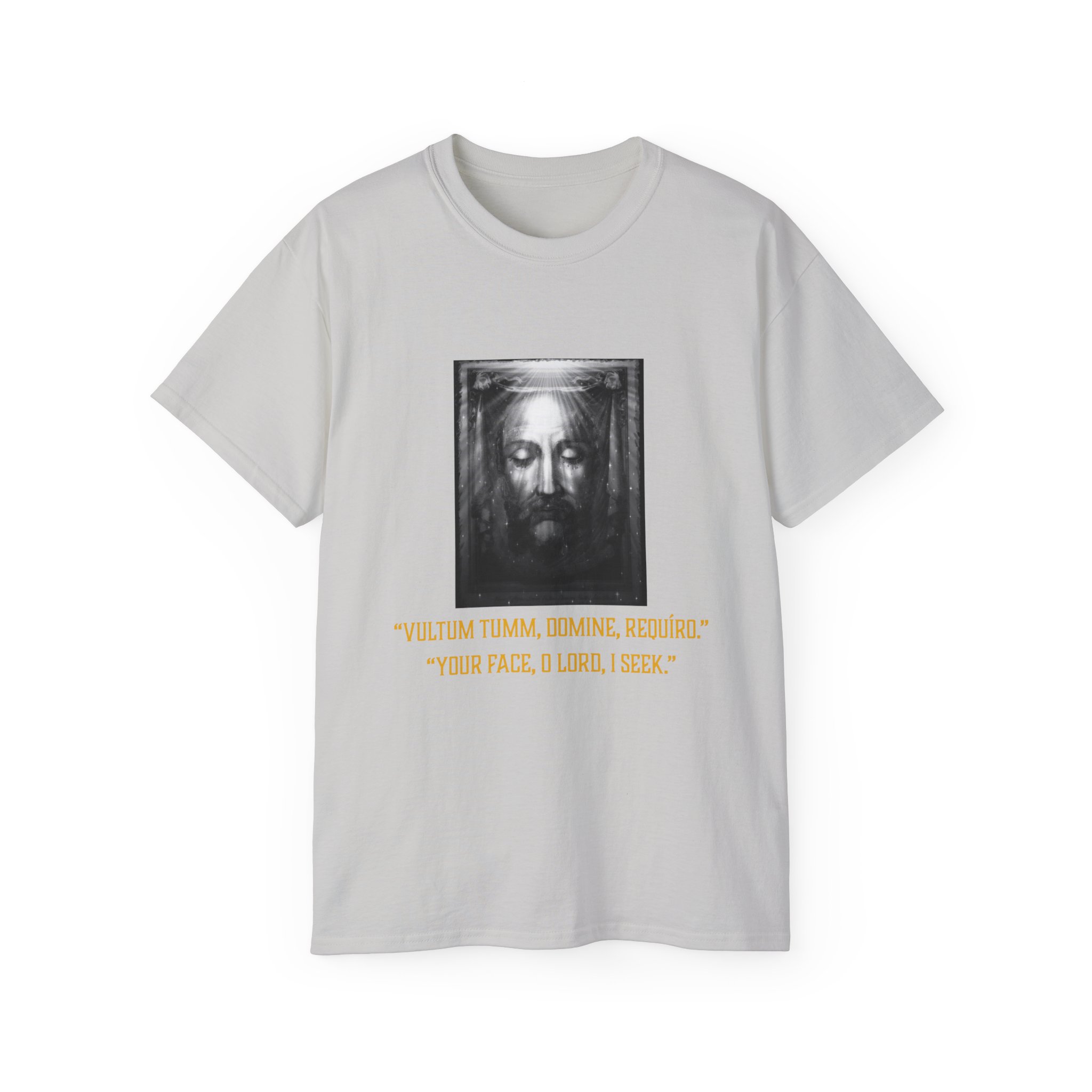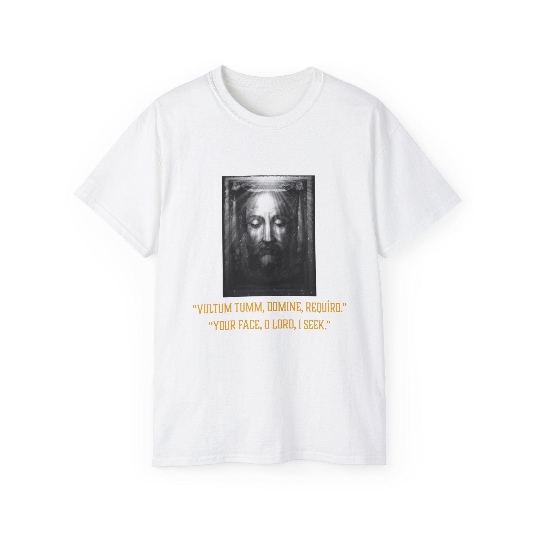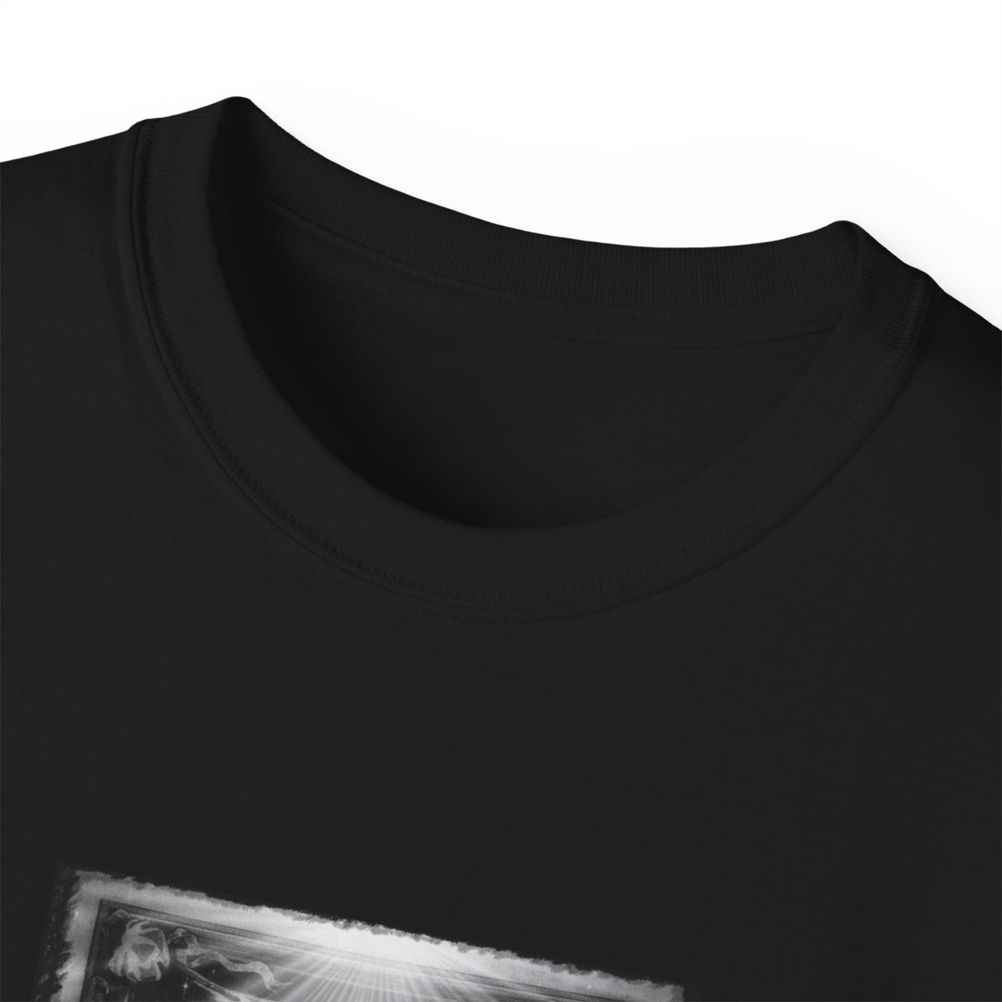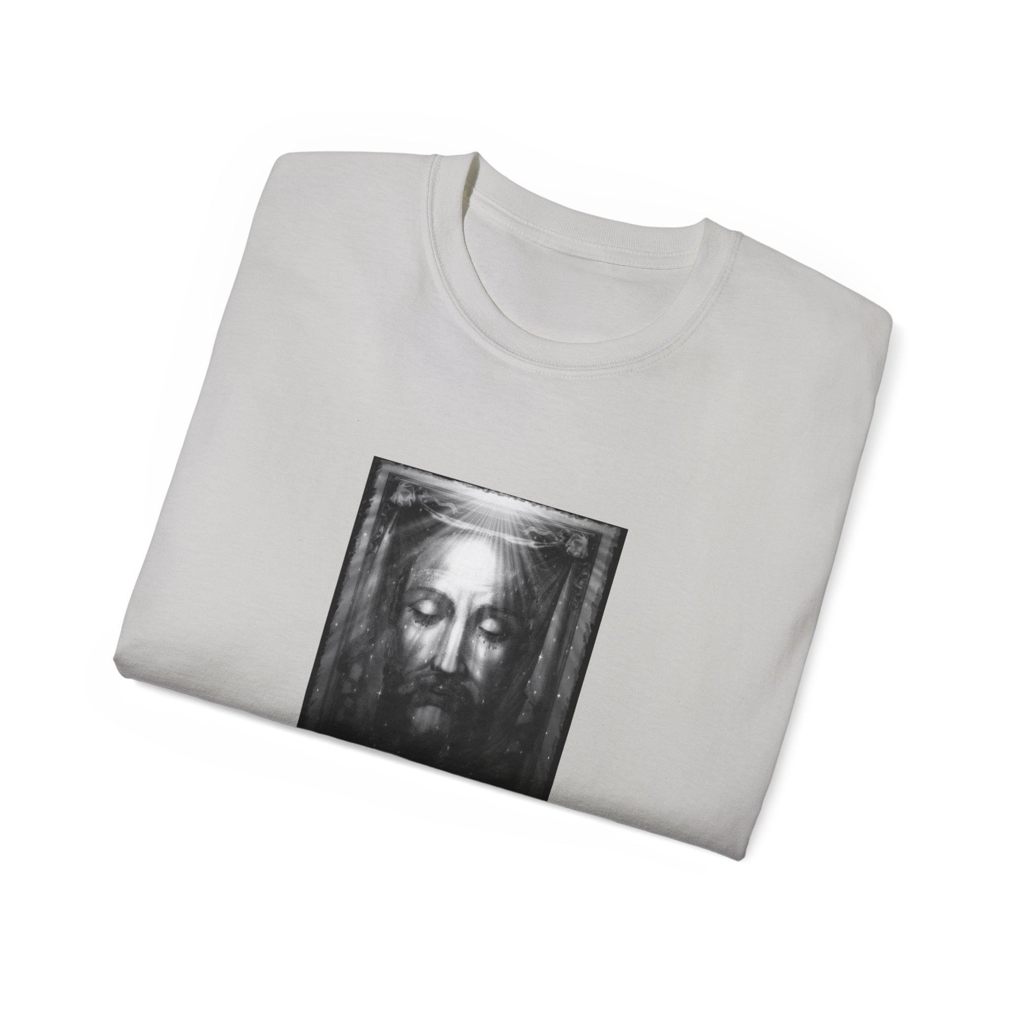 This classic cotton tee carries a quiet, contemplative energy — a soft, slightly vintage-feel shirt printed with a monochrome devotional portrait and subtle, antique-style text beneath. It sits comfortably oversized for easy layering and daily wear. The image reads like a small shrine on the chest, inviting a slower moment in a hurried day: a nod to history, faith, and thoughtful style that fits into a wardrobe for wandering afternoons, gallery visits, or evenings at a café. The breathable medium-weight fabric and tear-away label keep it comfortable; the muted print palette keeps the look restrained and thoughtful rather than loud.