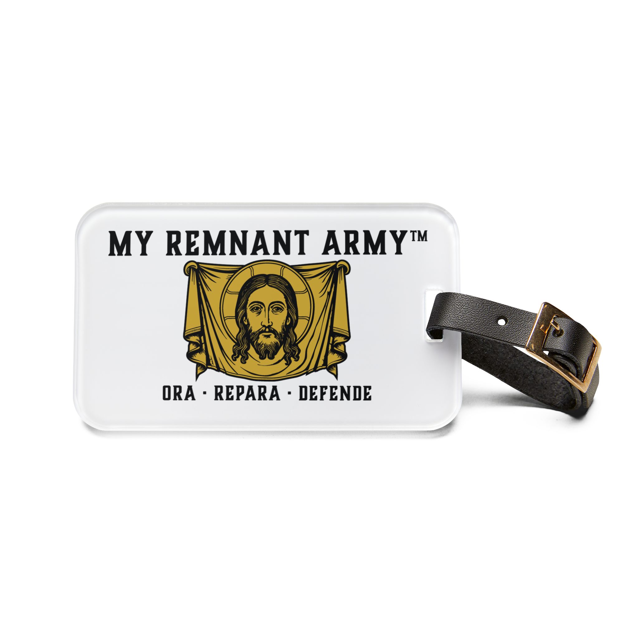 A sturdy acrylic luggage tag that carries a bold, emblem-style design with clear, glossy printing. The lightweight 2.4” × 4” tag clips on with an adjustable black leather strap and hides a rear pocket for a business card or contact info. The single-sided print uses vibrant inks for crisp lines and strong contrast, so your tag stays visible on busy carousels and in transit. Durable construction resists scuffs while the glossy face keeps the artwork bright and easy to spot — a confident way to mark your bag and share a personal statement while traveling.