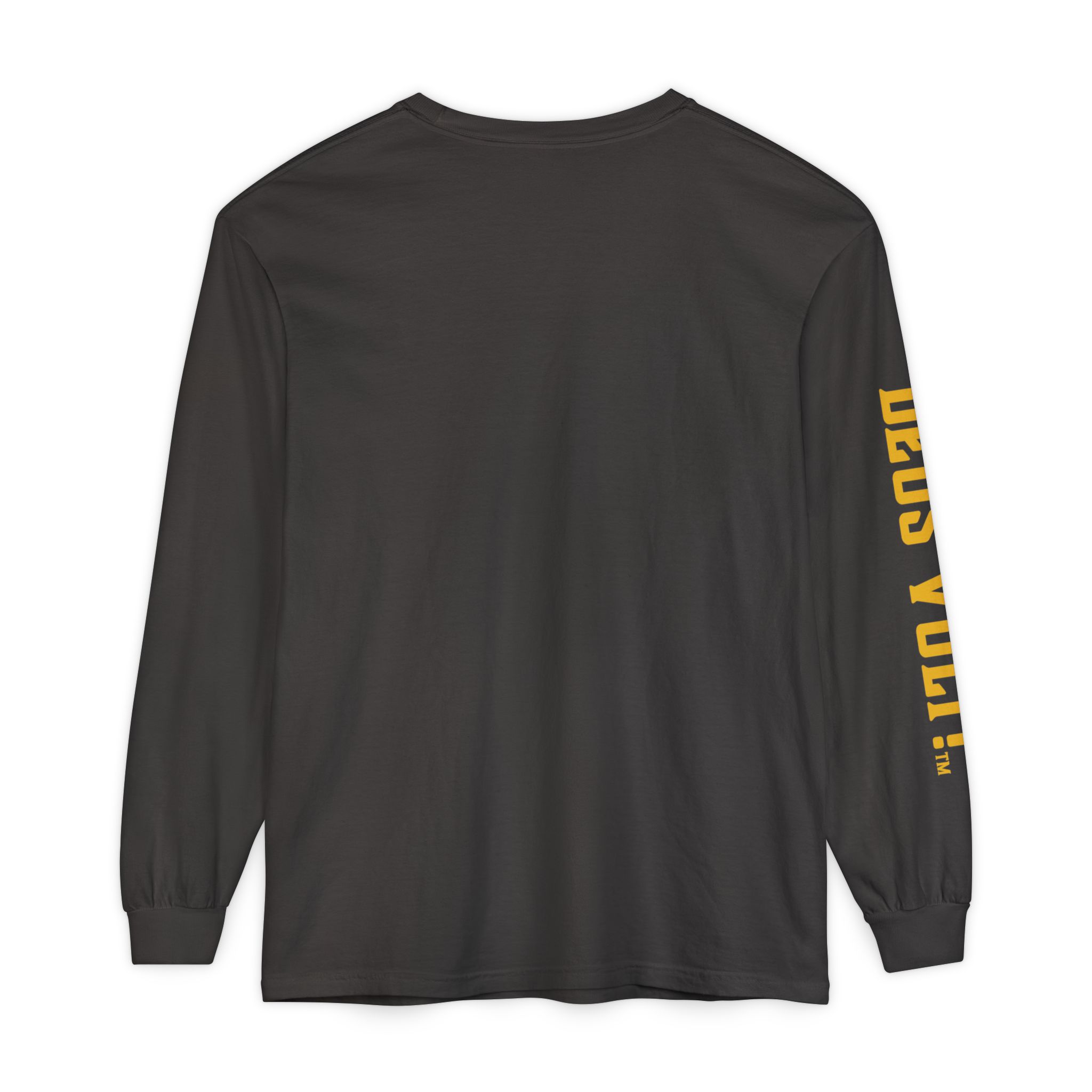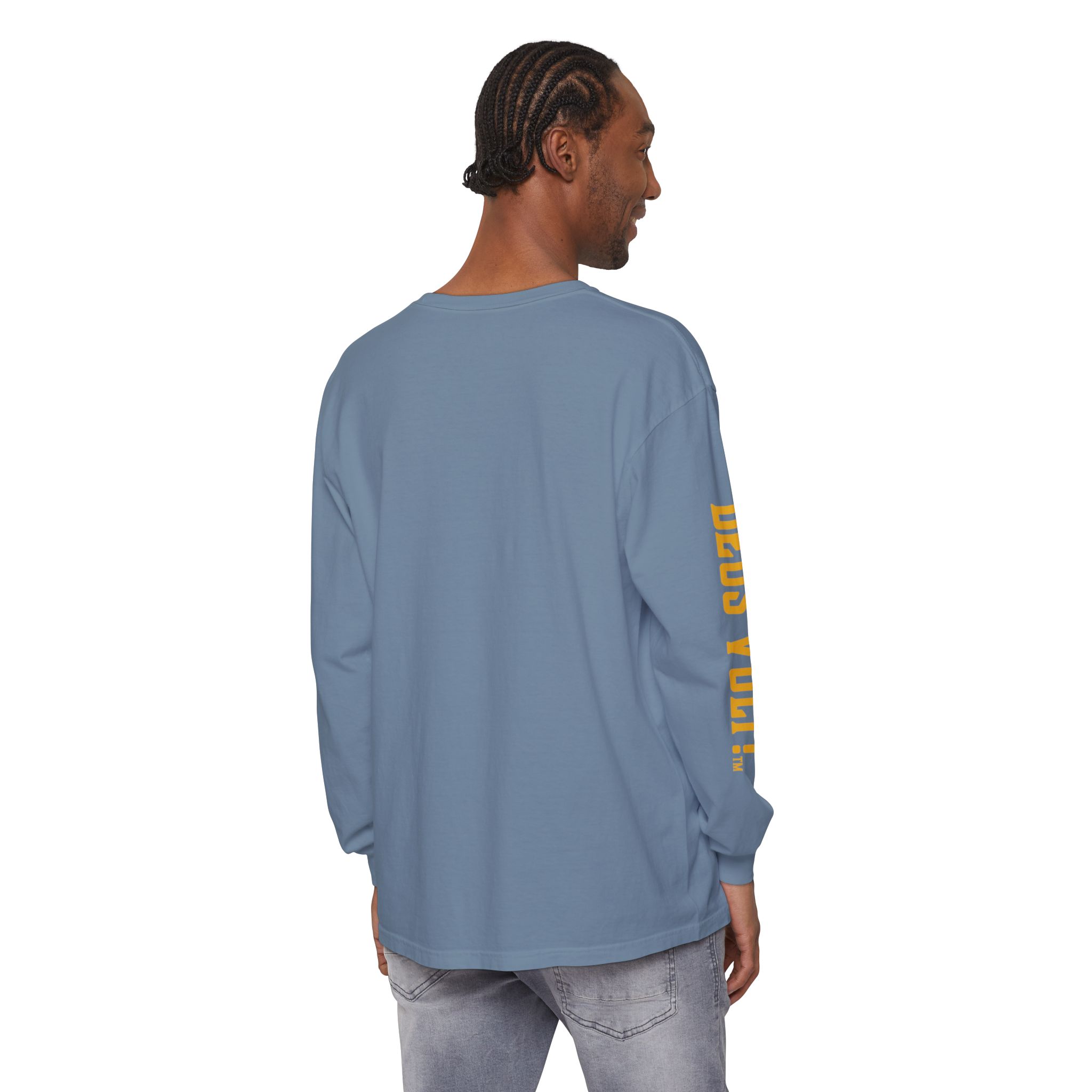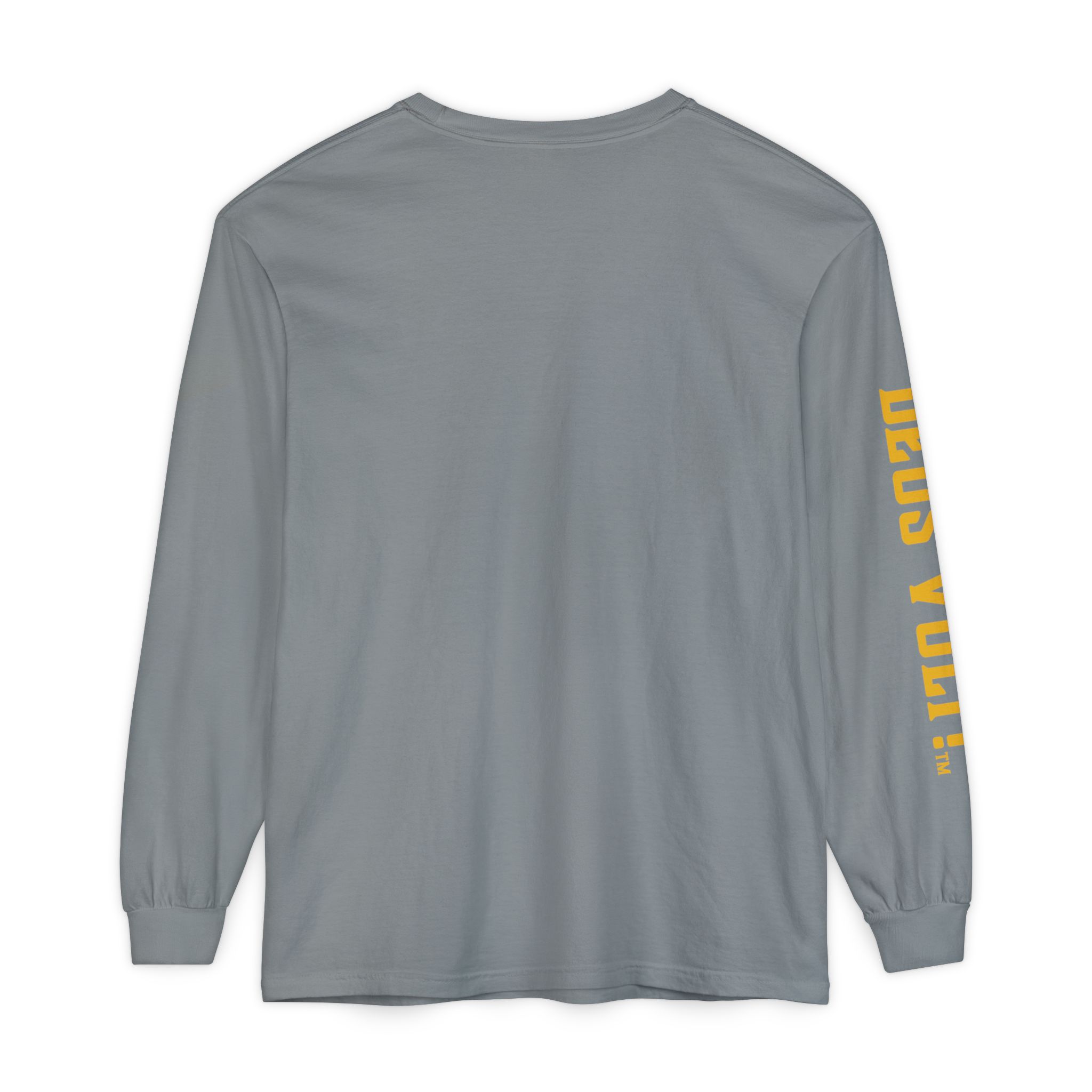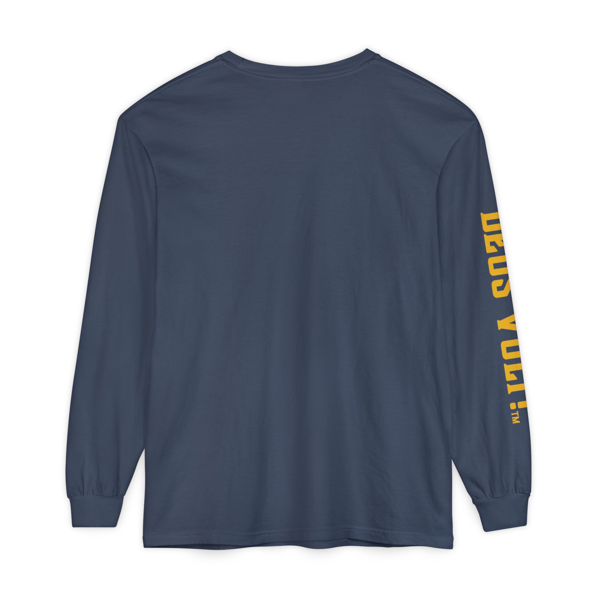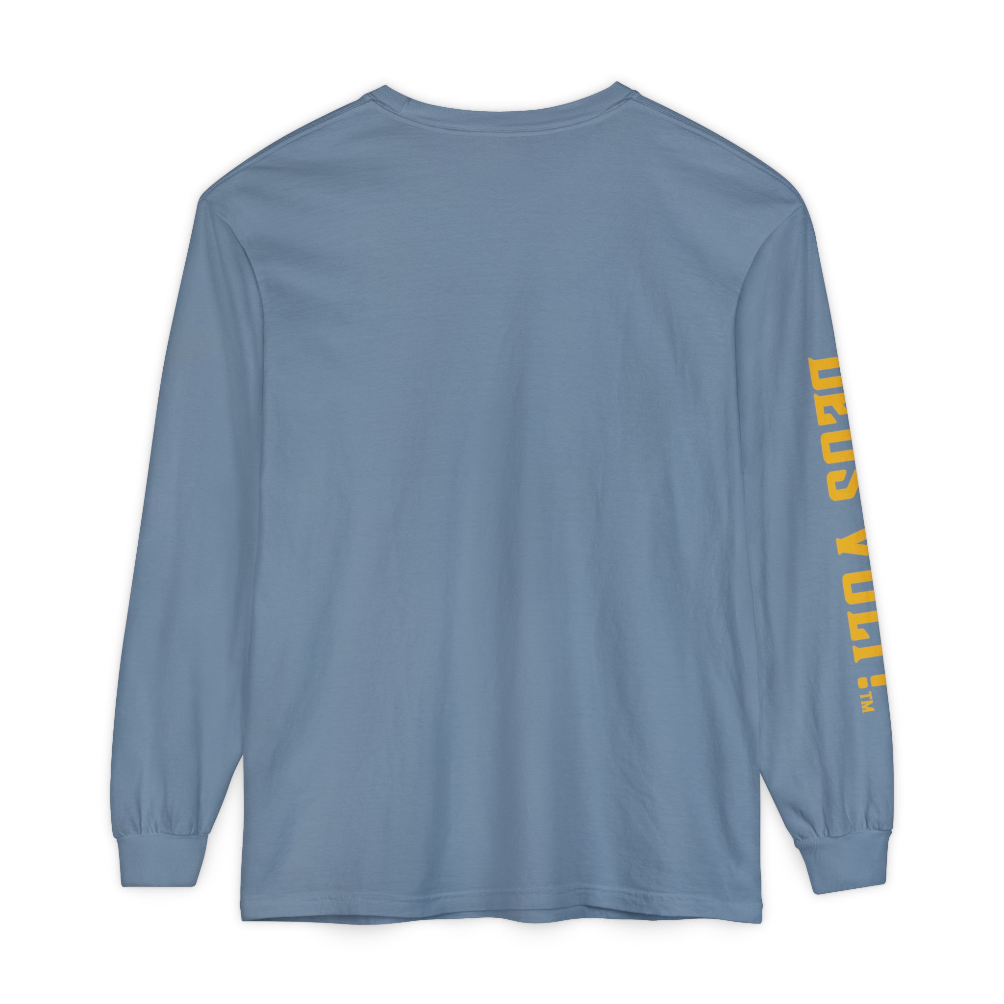 Soft, garment-dyed long sleeve with a quiet, devotional edge. The shirt’s warm, washed-in color and vintage-feel print invite calm confidence — a wearable nod to personal conviction that doesn’t shout. The front panel features a centered emblem and bold lettering on the sleeve, balanced by clean, minimal back. It drapes like a lived-in favorite and feels steady in the hand: slightly weighty, smooth ring-spun cotton that wears in rather than out. Slip it on for slow mornings, community gatherings, or evenings when you want your values to be seen without having to explain them.