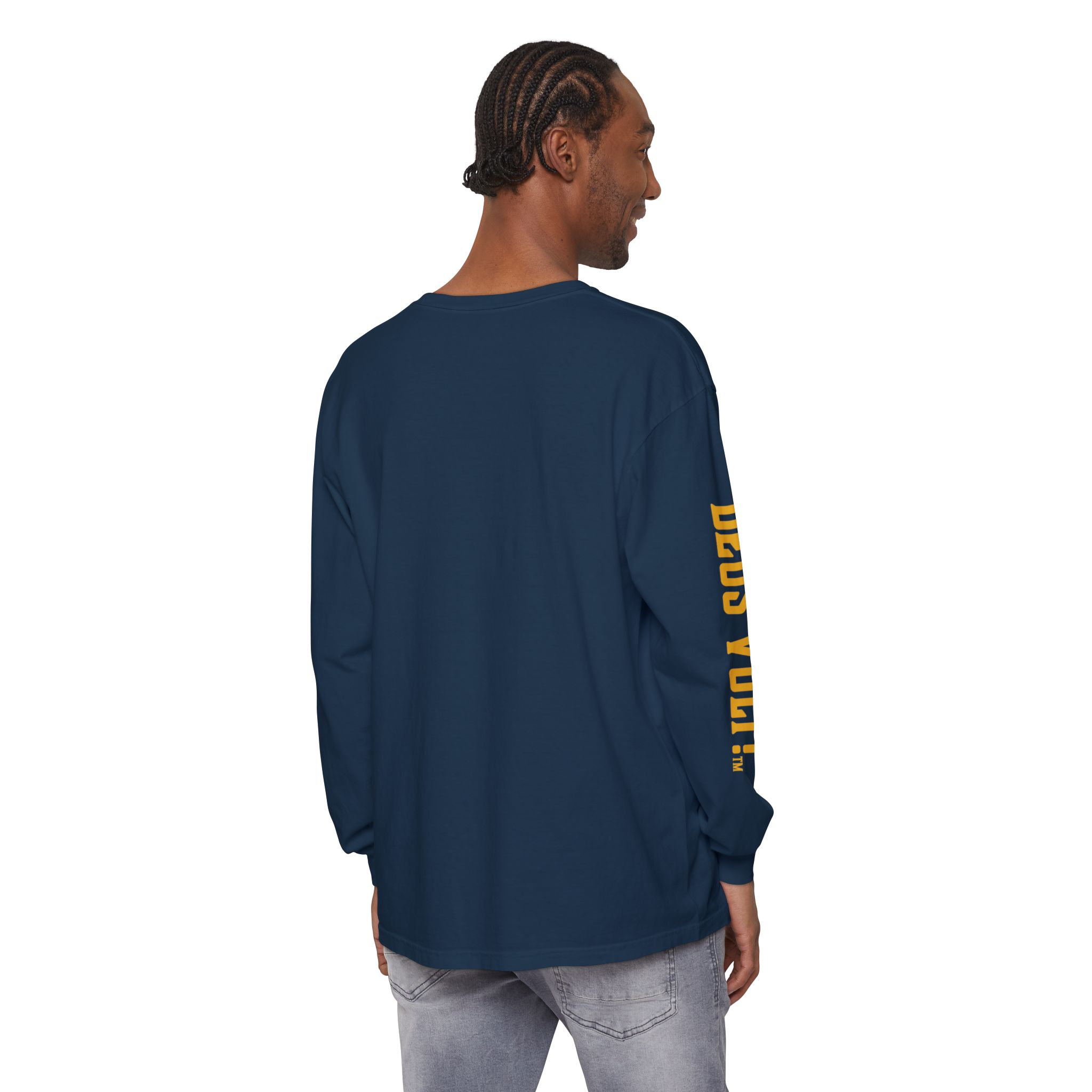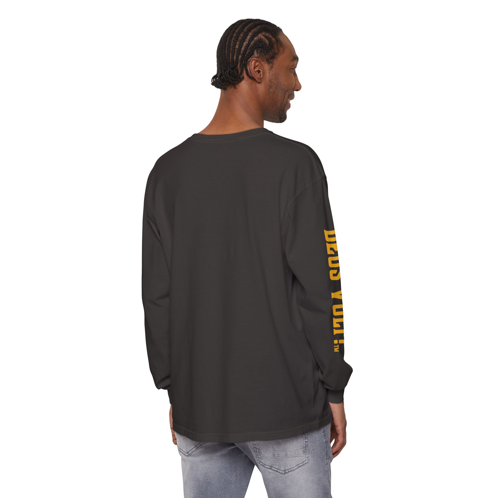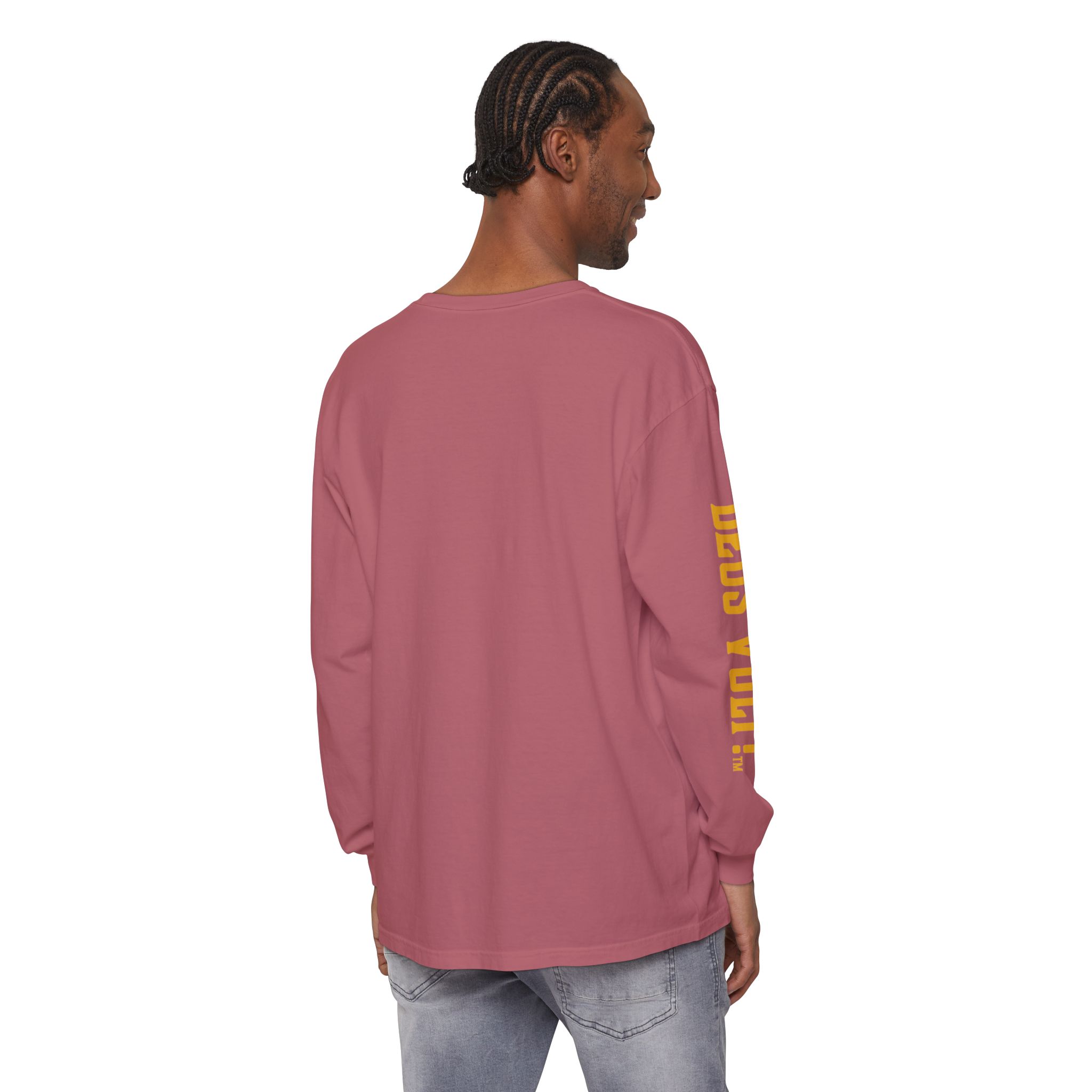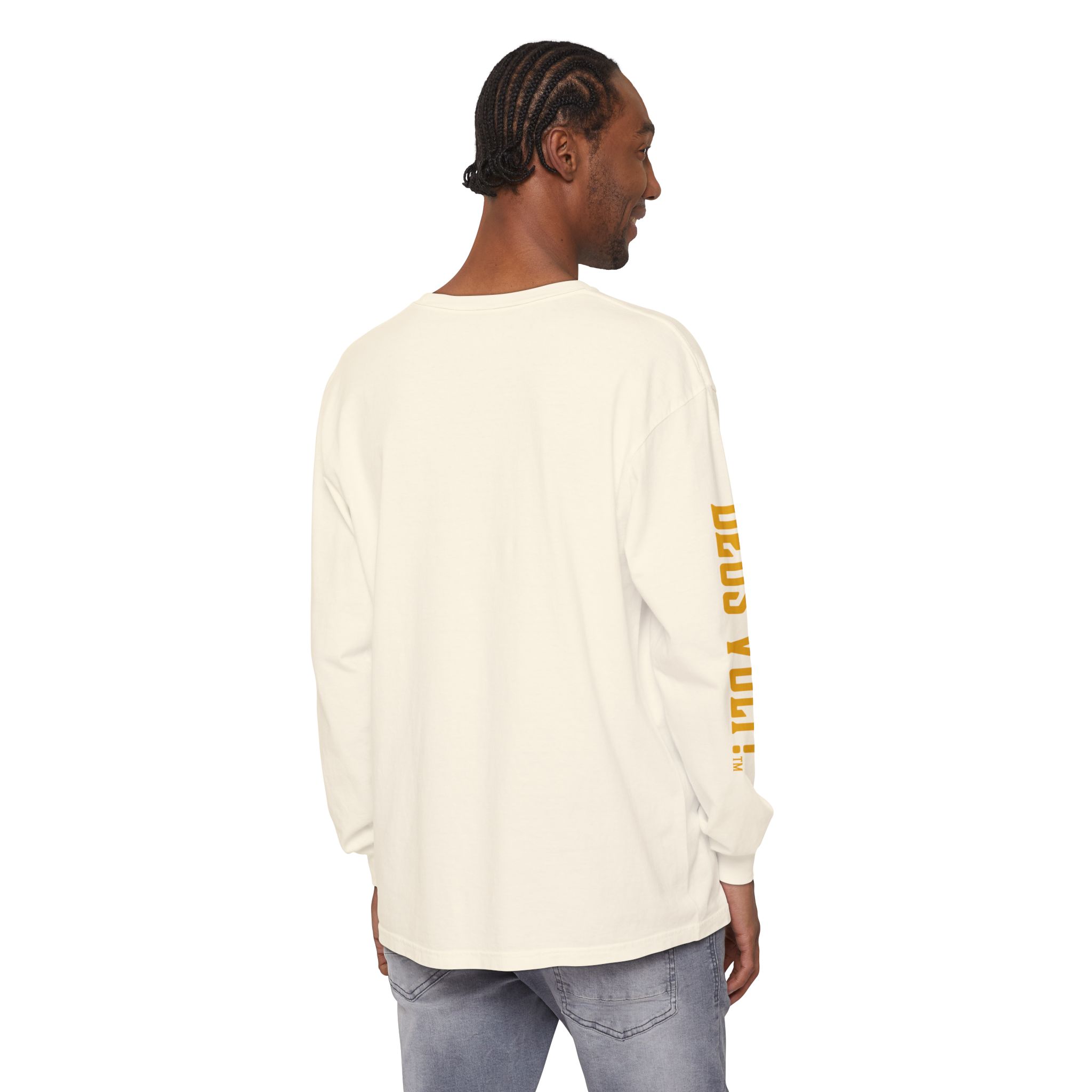 Soft, garment-dyed long sleeve with a quiet, devotional edge. The shirt’s warm, washed-in color and vintage-feel print invite calm confidence — a wearable nod to personal conviction that doesn’t shout. The front panel features a centered emblem and bold lettering on the sleeve, balanced by clean, minimal back. It drapes like a lived-in favorite and feels steady in the hand: slightly weighty, smooth ring-spun cotton that wears in rather than out. Slip it on for slow mornings, community gatherings, or evenings when you want your values to be seen without having to explain them.