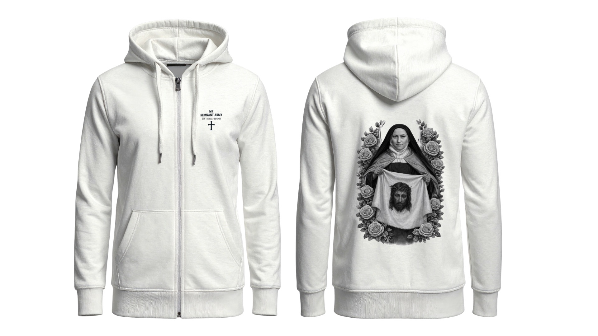 ‘Deus Vult’ Catholic Crusader Emblem “My Remnant Army” Logo Full-Zip Hoodie